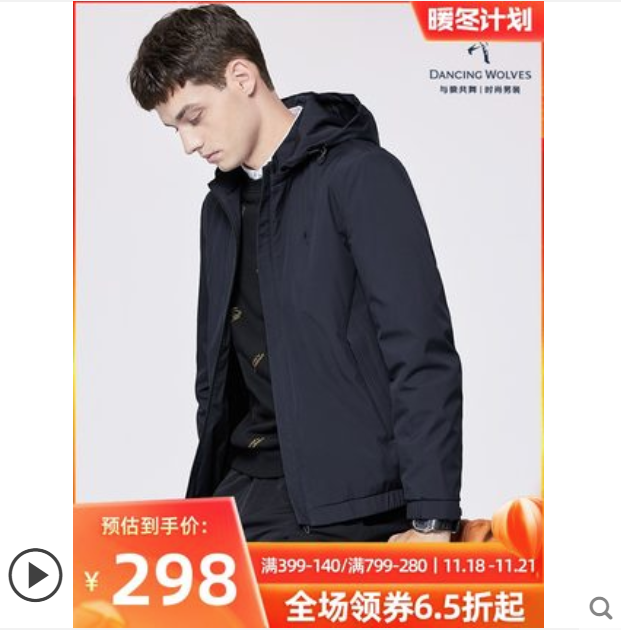全国包邮与狼共舞连帽夹克男2021秋冬新款男士可拆卸帽外套