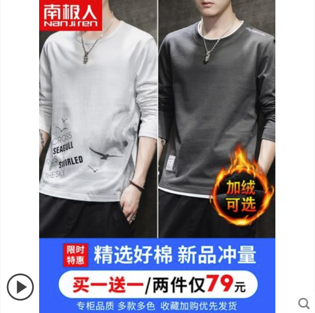 南极人t恤男士秋季长袖纯棉衣服2021新款上衣加绒打底衫秋衣男装
