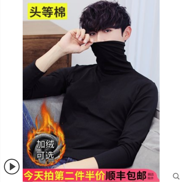 秋冬高领男打底衫纯棉长袖T恤德绒男士加绒保暖秋装内衣秋衣上衣