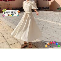 乐町气质法式衬衫连衣裙春装2021女装白色翻领气质甜美连衣裙子