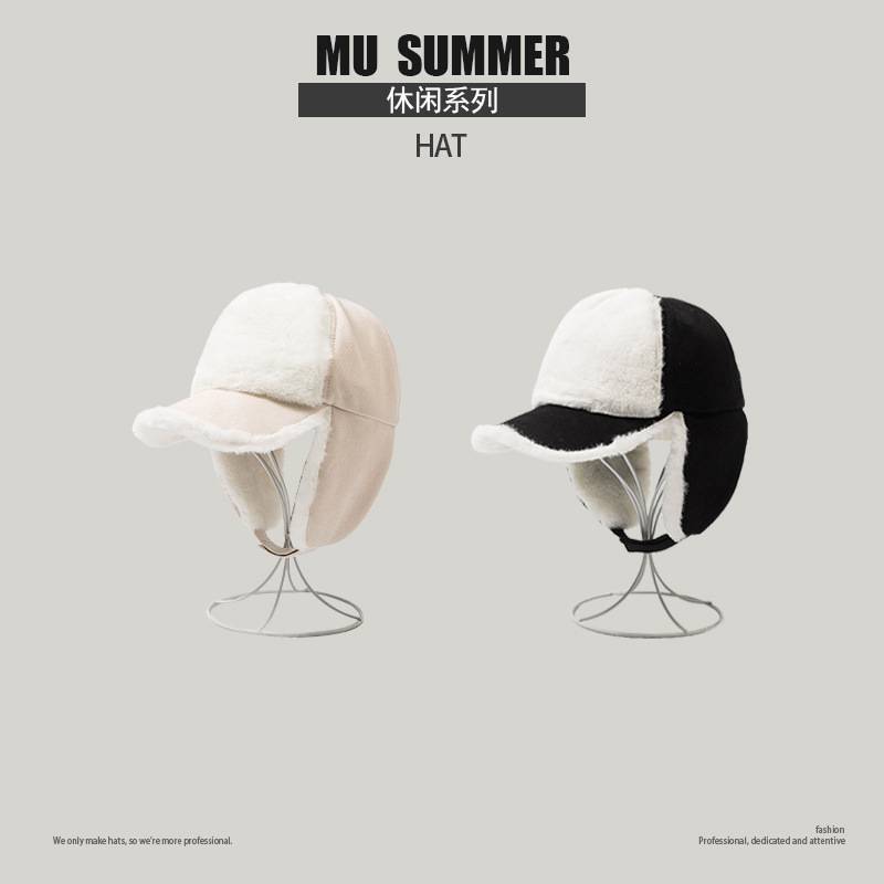 网红韩版百搭秋冬季鸭舌毛绒棒球帽子女防风保暖护耳加厚雷锋帽潮