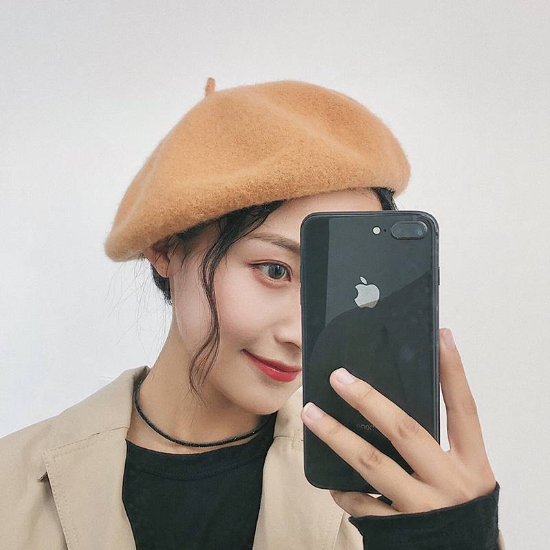 贝雷帽女秋冬季韩版日系百搭英伦羊毛呢黑色蓓蕾画家帽子冬天休闲
