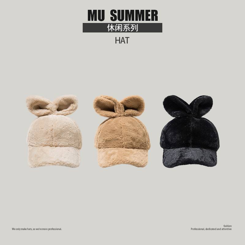 日系甜美可爱兔耳朵毛绒棒球帽韩版秋冬时尚百搭软妹学生鸭舌帽子