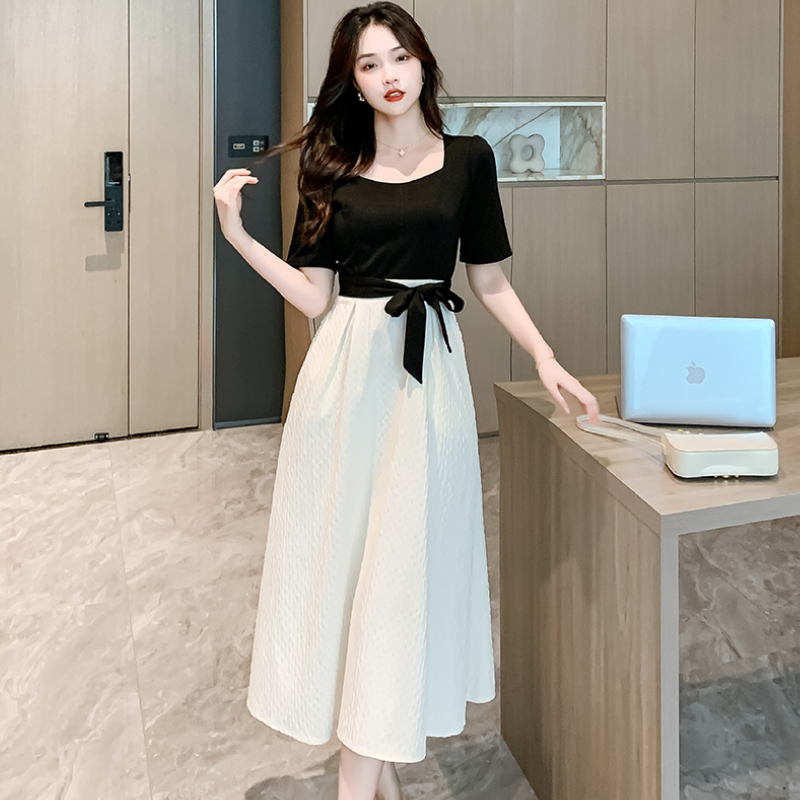 2023新款连衣裙夏天气质感经艳法式撞色拼接气质名媛
