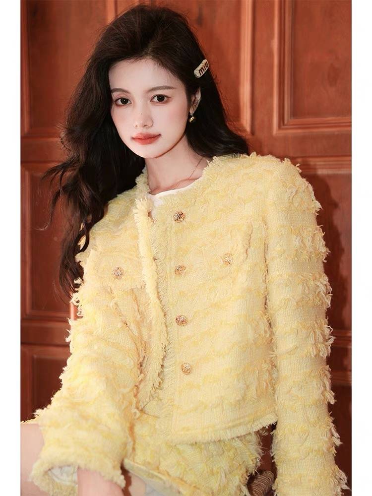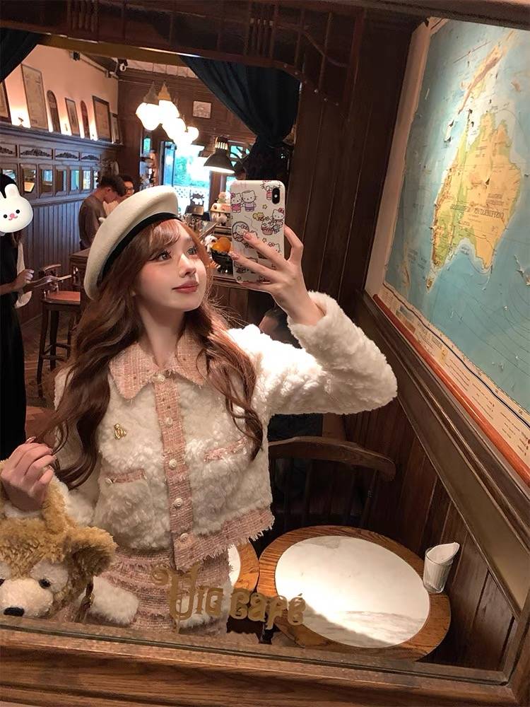 短款星星毛绒外套小香风套装女秋冬季包臀半身裙高级感气质两件套