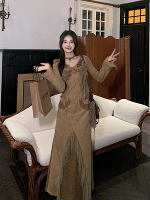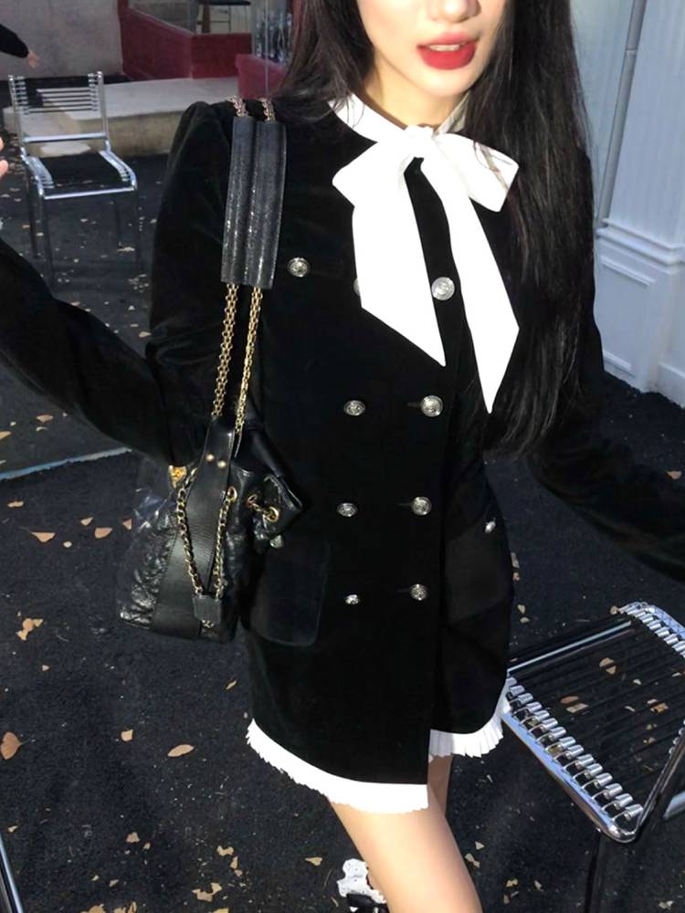 千金风黑色丝绒连衣裙女秋季法式高级感chic甜辣小香风套装裙