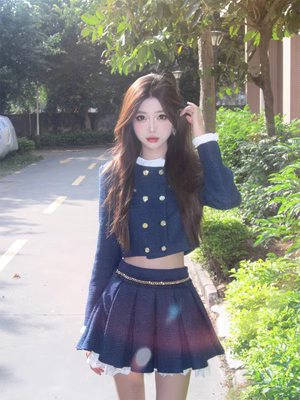 纯欲小香风藏蓝马术套装裙秋冬2023新款宫廷风女团打歌服两件套女
