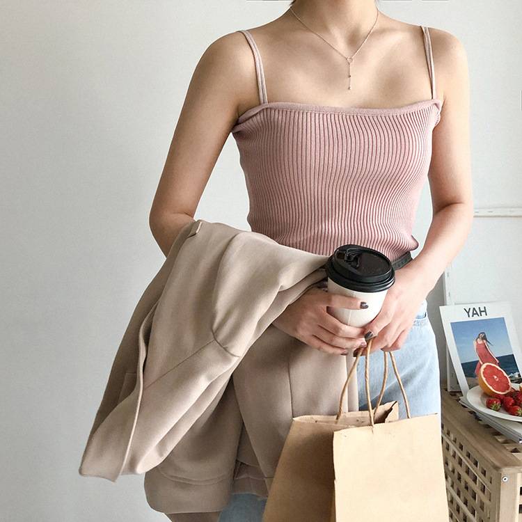 春夏chic打底针织吊带背心女外穿韩版小清新学生修身纯色内搭上衣