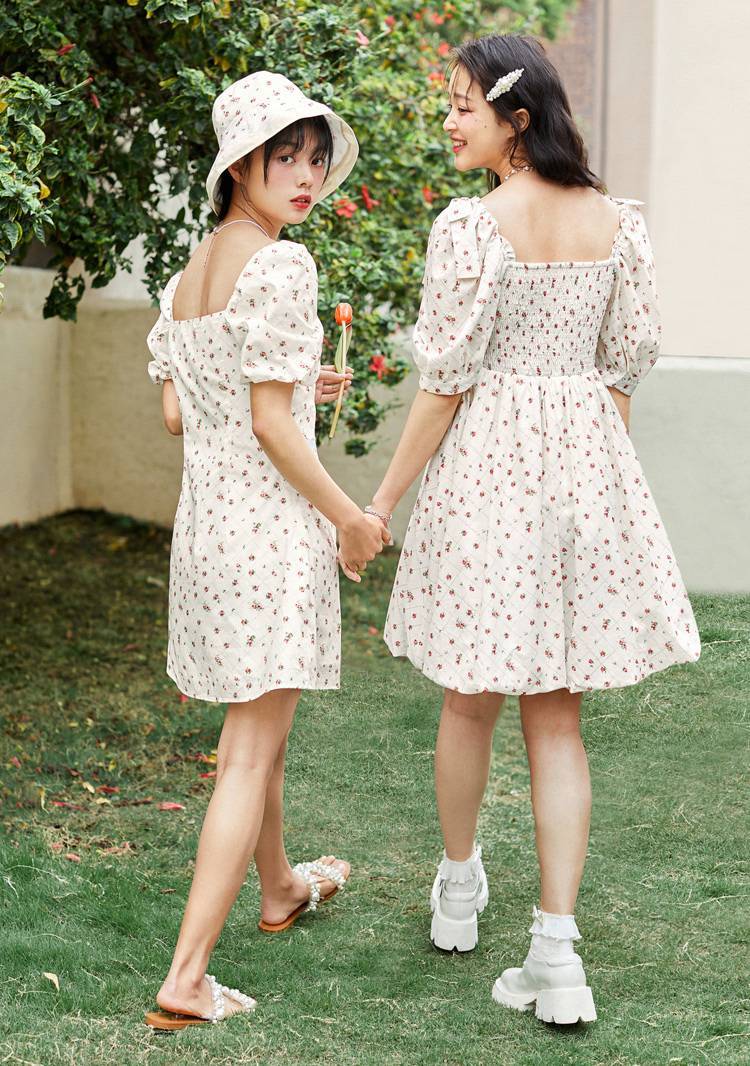 2021夏季新品女装春日碎花泡泡袖宝藏连衣裙显瘦纯欲