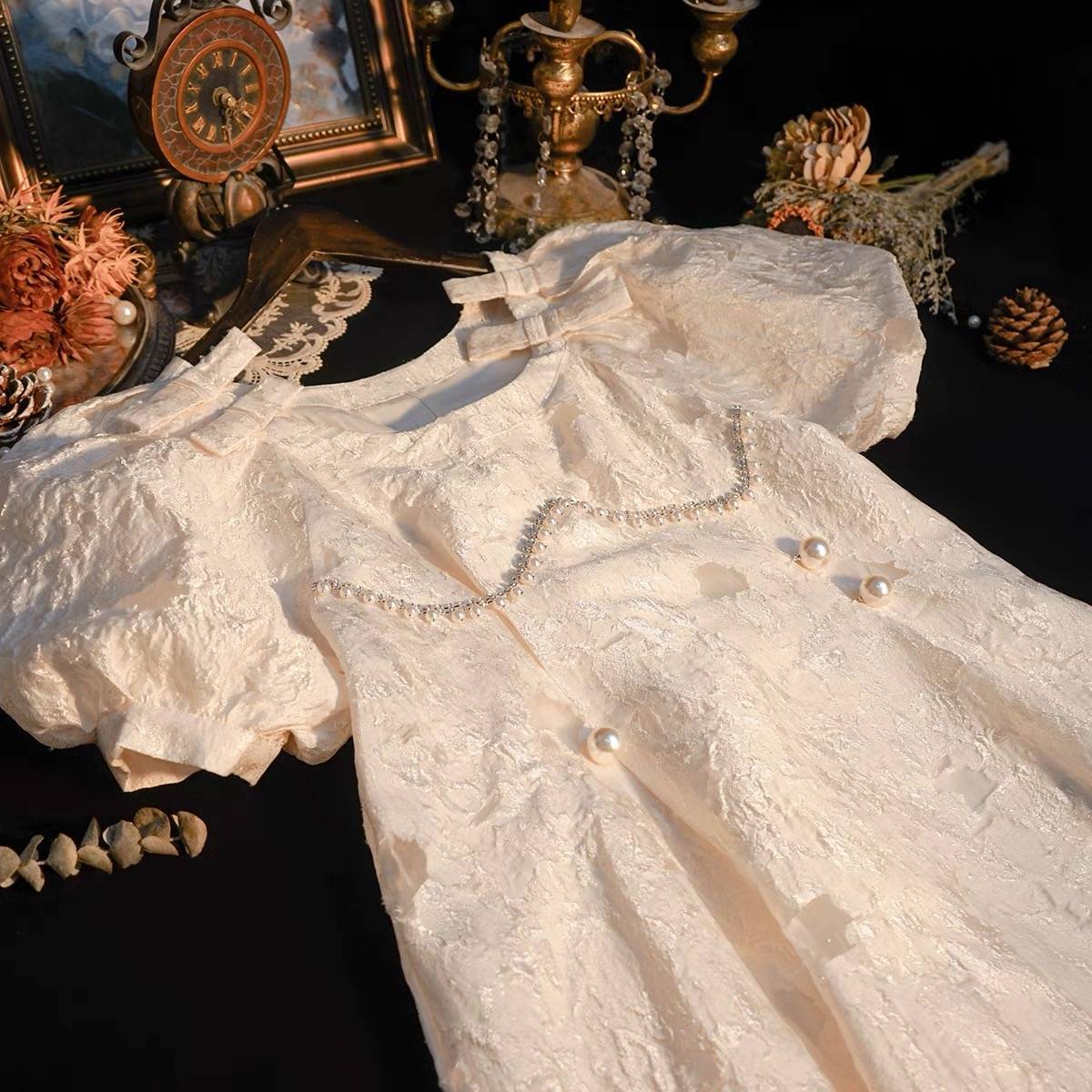 宫廷风裙子甜美白色泡泡袖连衣裙重工复古提花蓬蓬裙非非日系