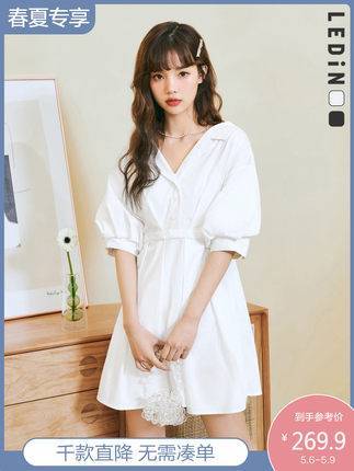气质法式衬衫连衣裙春装2021女装白色翻领气质甜美连衣裙子