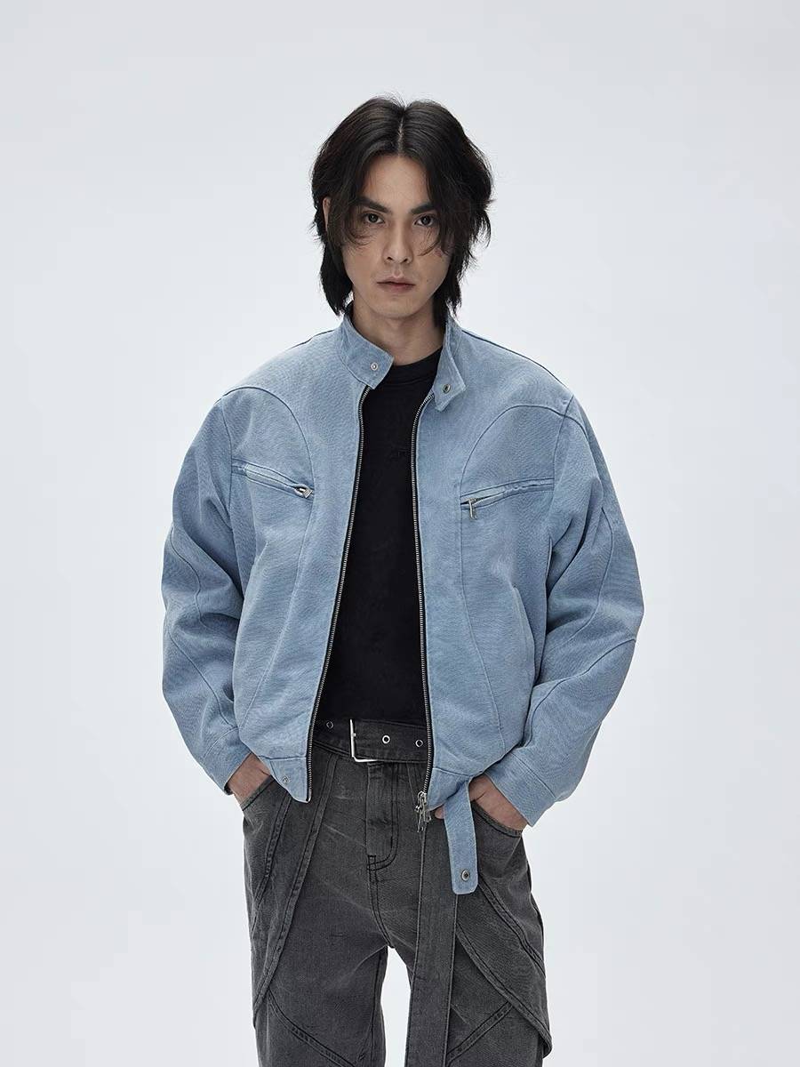 ANG 哈灵顿重磅水洗帆布夹克cleanfit冰川蓝简约休闲外套男