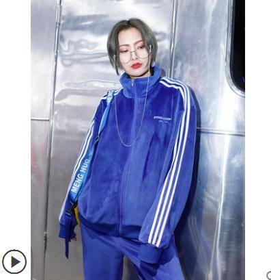 双面金丝绒两件套装女2019秋冬季新款加绒加厚休闲服运动卫衣时尚