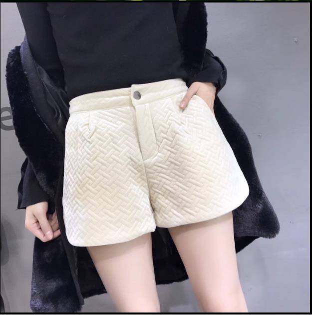 2018秋冬装新款格子毛呢短裤女夹棉加厚保暖阔腿大码显瘦靴裤打折
