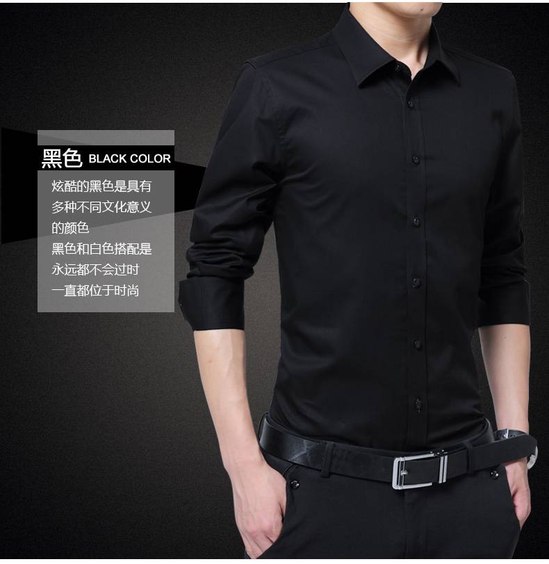 男士长袖衬衫男春秋季纯色衣服修身韩版潮商务休闲工装