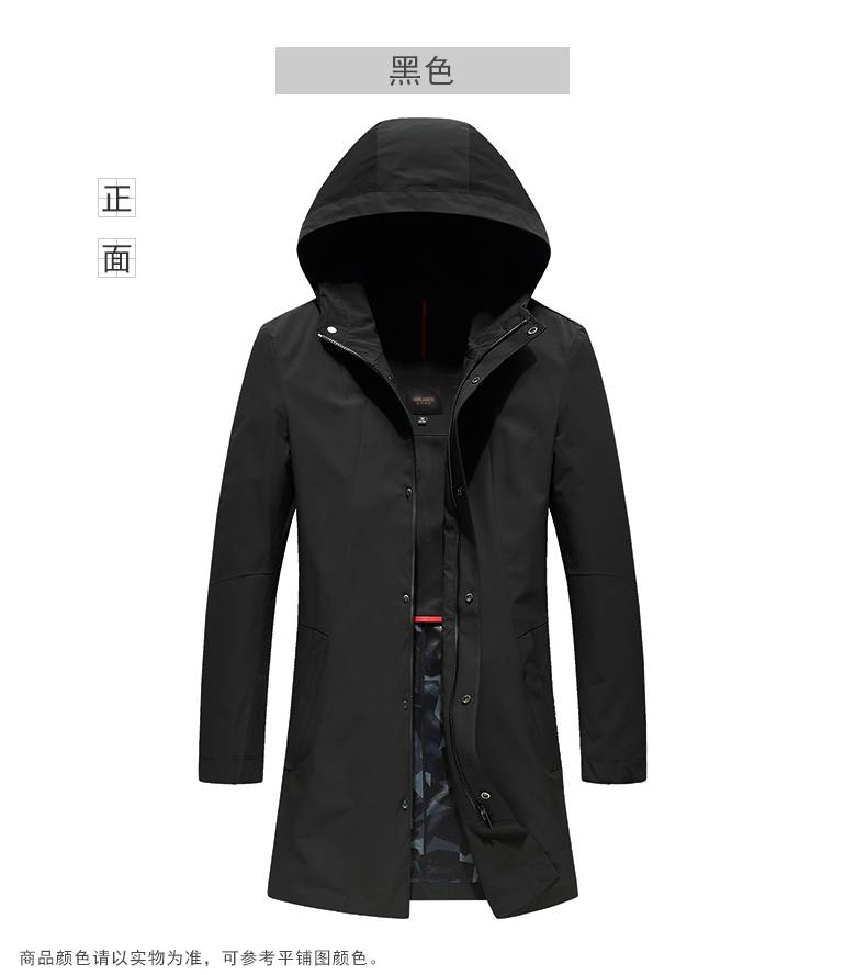 SLANG BOSS秋季商务休闲中长款青年纯色风衣薄英伦修身连帽男外套