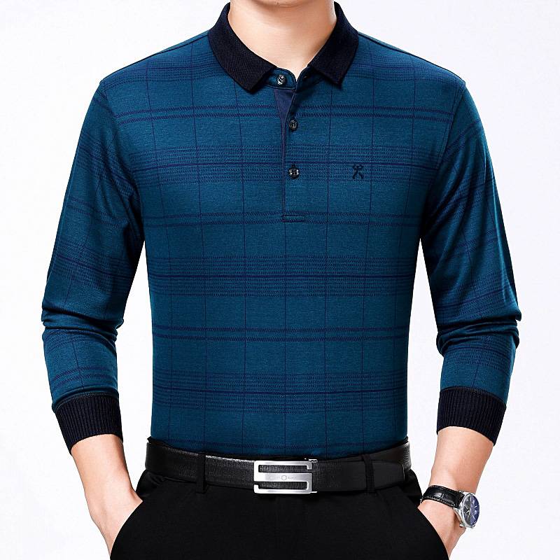 劲霸官方男装正品秋季中年羊绒毛衣长袖衬衫休闲丝光棉T恤爸爸装