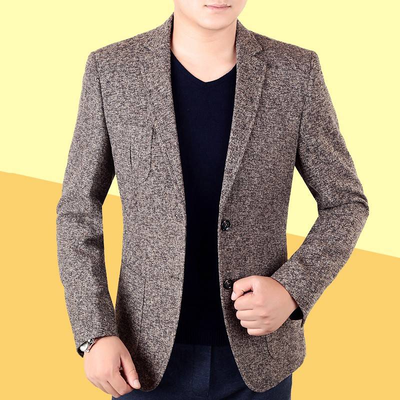 2018春秋新款中年男士夹克羊毛呢子西装领外套