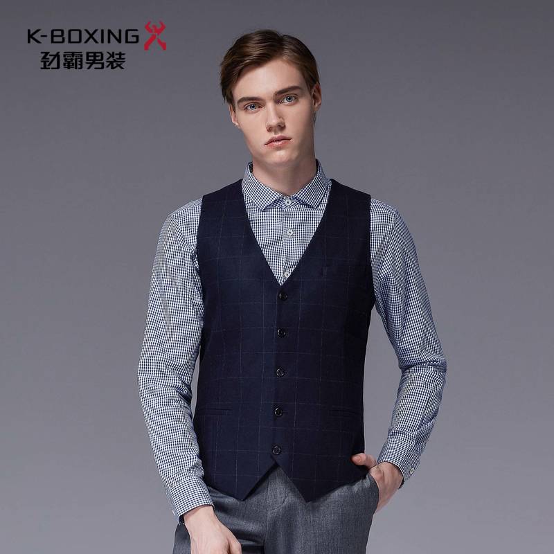 劲霸秋季新款单线大格男士多粒单排扣西装马夹无开衩
