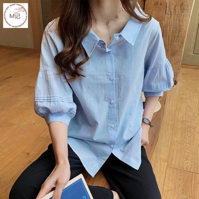 夏装新款时尚气质灯笼袖衬衫女宽松显瘦娃娃衫韩范衬衣上衣