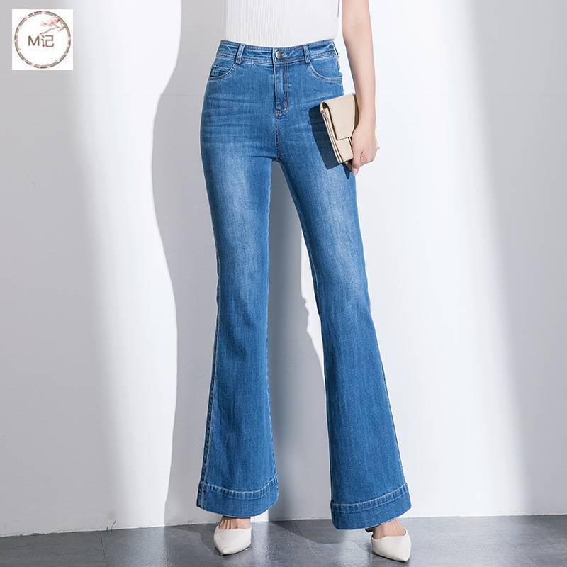 2020春夏创意款批发喇叭牛仔裤女宽松休闲高腰显瘦毛边长裤