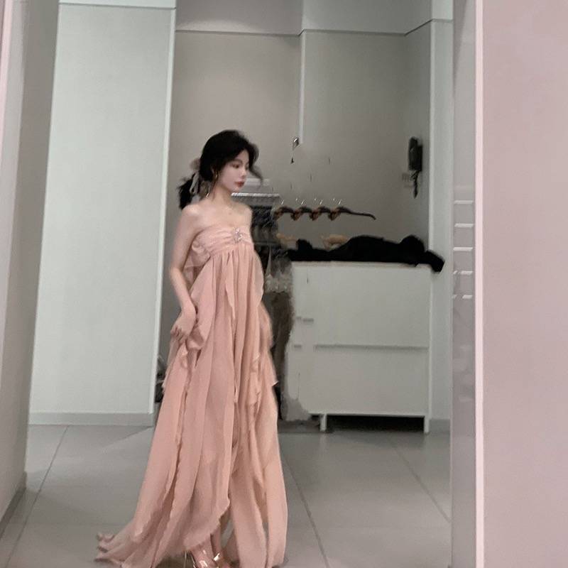 露背不规则飘逸无袖长裙女