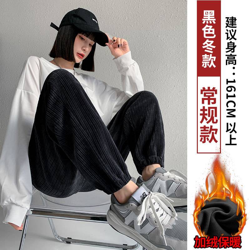 雪尼尔运动裤女秋冬2021新款加绒加厚休闲卫裤束脚外穿灯
