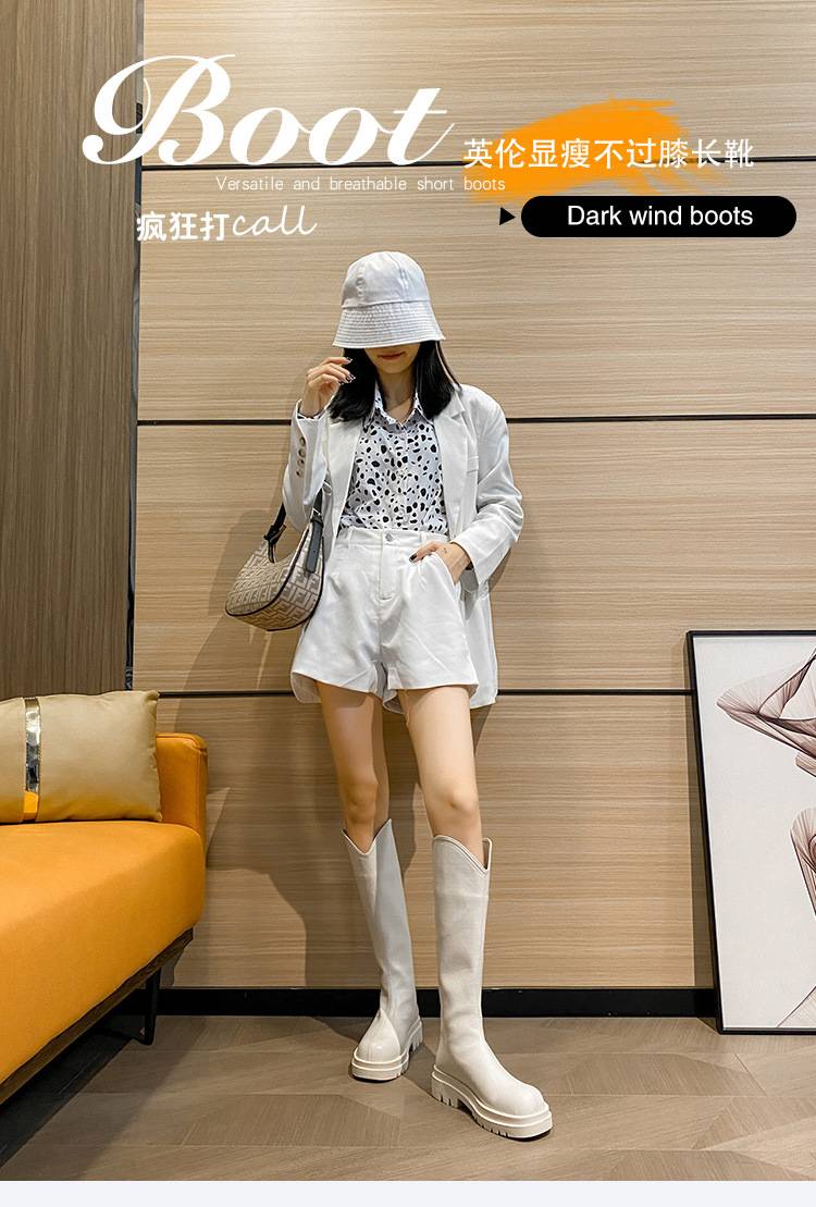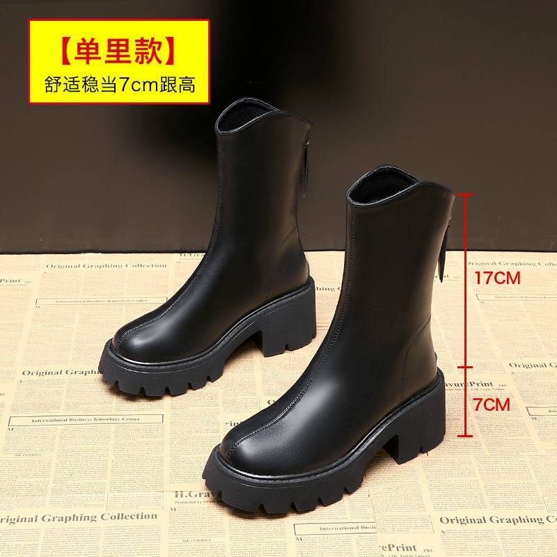 棕色短靴女2021新款松糕厚底中筒马丁靴春秋单靴粗跟显瘦烟筒靴子