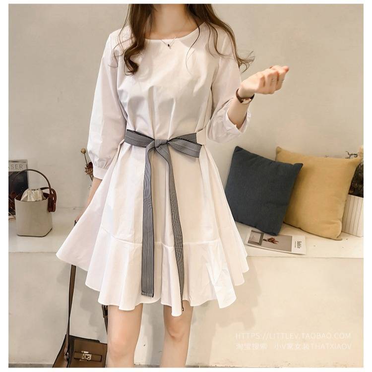 早春新款女装气质系带蝴蝶结收腰连衣裙女a字裙温柔少女短裙子潮