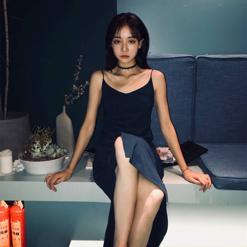 温柔风小黑裙黑色v领吊带裙女夏季新款性感冷淡风连衣裙