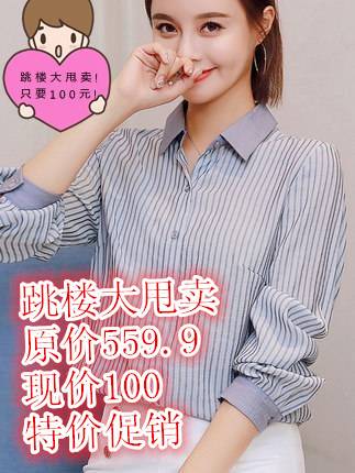 条纹衬衫女长袖2018春装新款职业女装宽松雪纺上衣