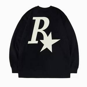 RASS杏色复古星星长袖美式潮牌春秋圆领套头宽松情侣装基础t恤男