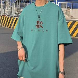 纯棉短袖t恤男夏季宽松港风五分半袖男士T设计感小众印花情侣体恤