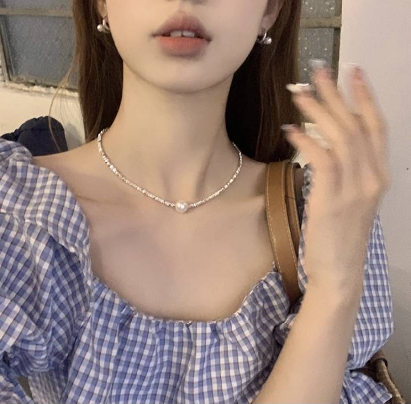S925珍珠项链女小众设计感轻奢冷淡风颈链配饰韩国锁骨链纯银吊坠
