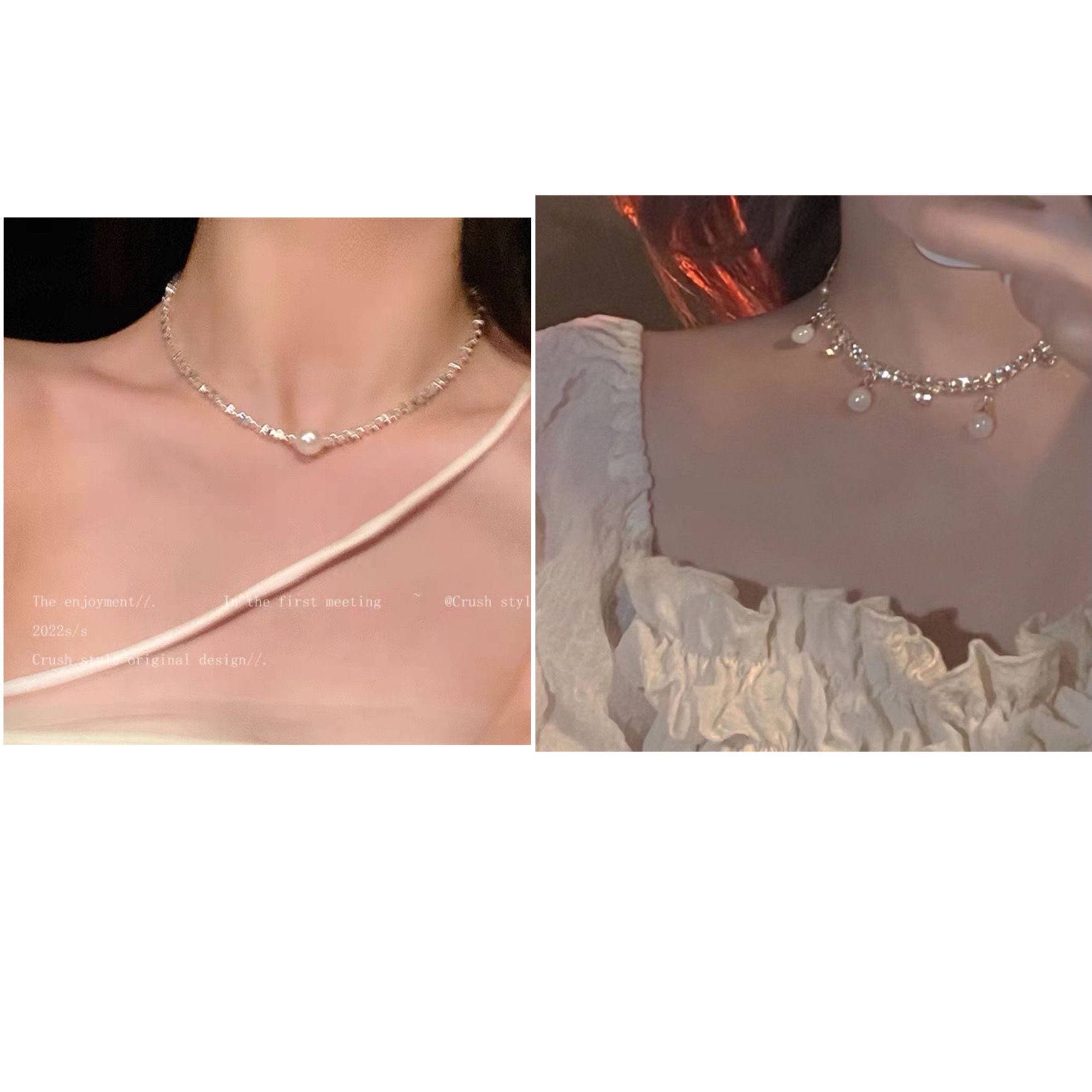 法式不掉色珍珠锆石项链女轻奢小众高级感配饰颈链气质银色锁骨链