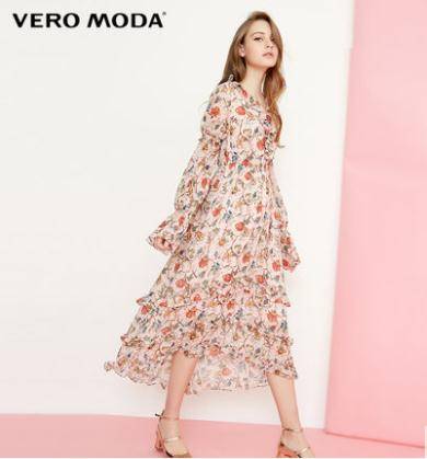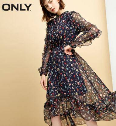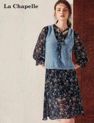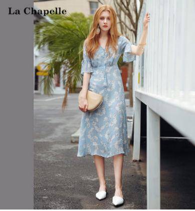 雪纺连衣裙女拉夏贝尔2018夏季新款秋显瘦气质淑女碎花中长款裙子