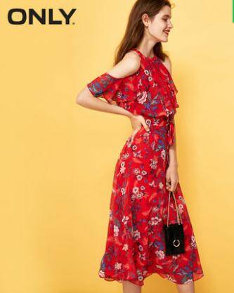 2018秋季新款露肩荷叶边雪纺连衣裙女
