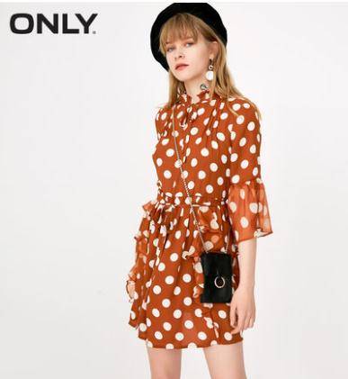 2018秋季新款喇叭袖雪纺波点连衣裙女