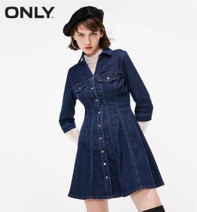 2018秋季新款单排扣修身牛仔连衣裙女