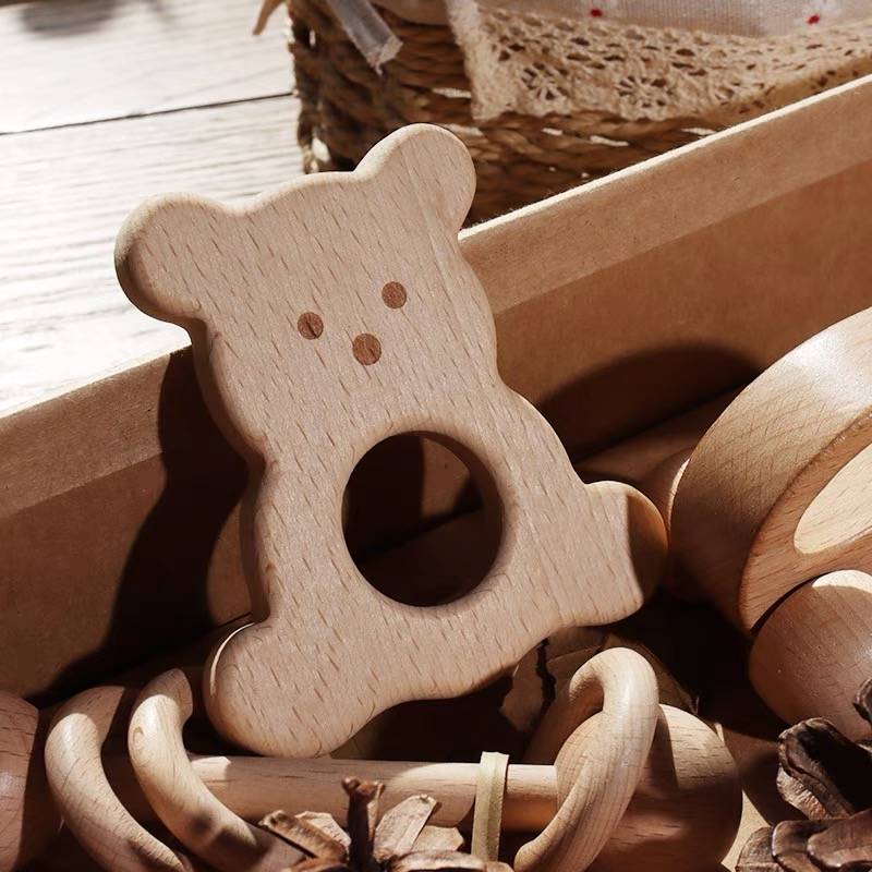 modomoma礼寓新生儿用品婴儿礼盒满月宝宝手摇铃木制玩具周岁礼物