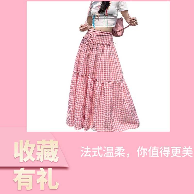 粉色格子长裙 78.00 已售:0件