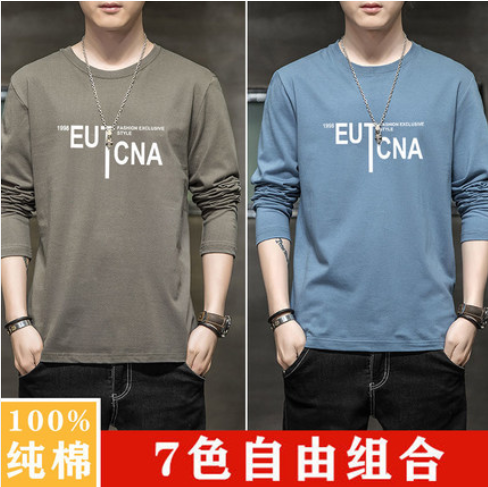 男士长袖t恤春季圆领打底衫纯棉宽松体恤潮修身长袖春秋男装上衣