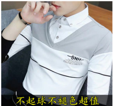 春季纯棉长袖t恤男假两件卫衣潮流帅气男装打底衫带领秋衣上衣服