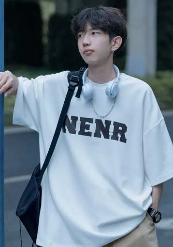 t恤男夏季日系宽松纯棉字母印花体恤重磅280g新款休闲短袖潮流ins