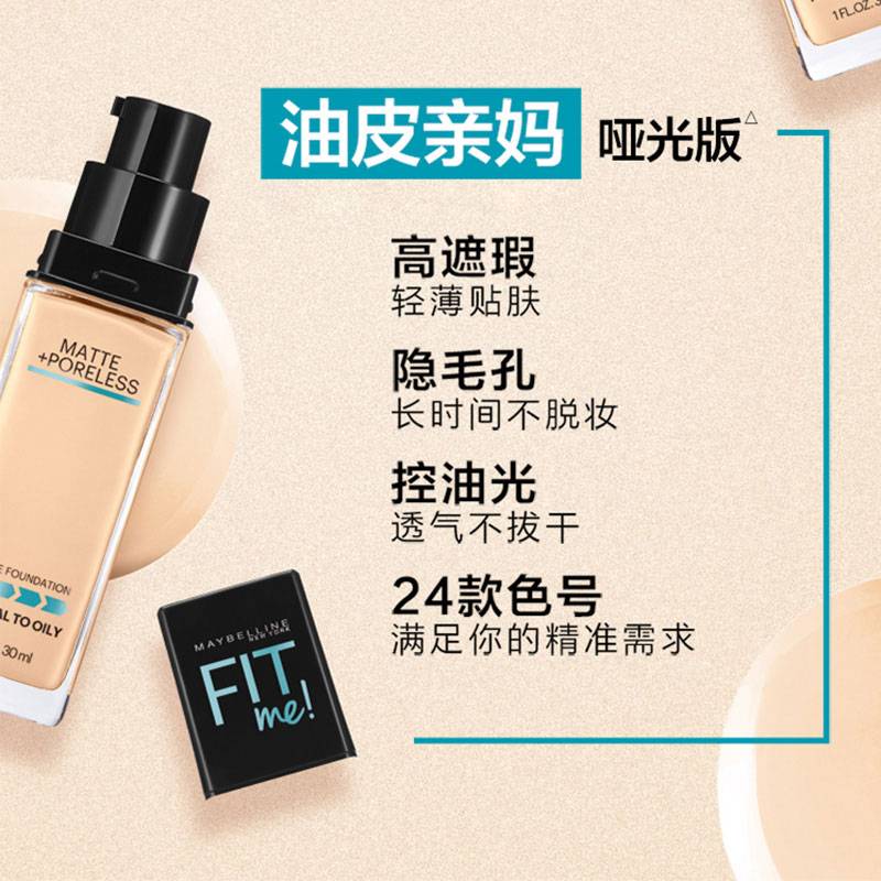 美宝莲fitme粉底液巨持妆遮瑕持久干皮混油皮学生买一送一