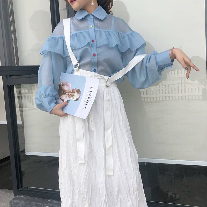 背带裙女2019新款百搭韩版chic小众超仙褶皱半身裙显高显瘦遮肉裙