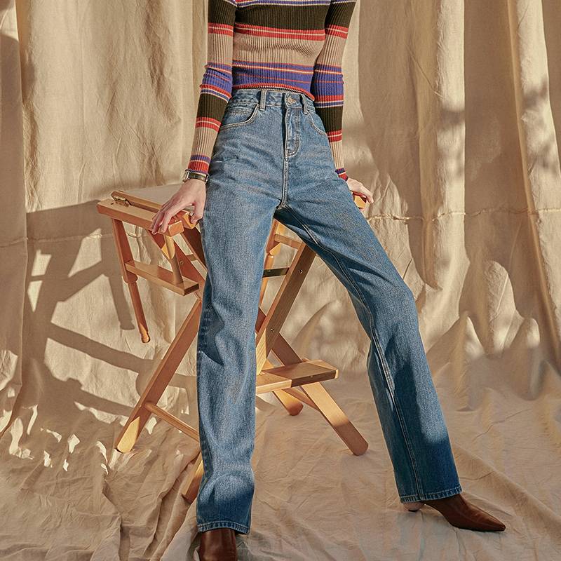 秘密盒子 高个子牛仔19年夏新款通勤全棉浅蓝色直筒高腰牛仔裤