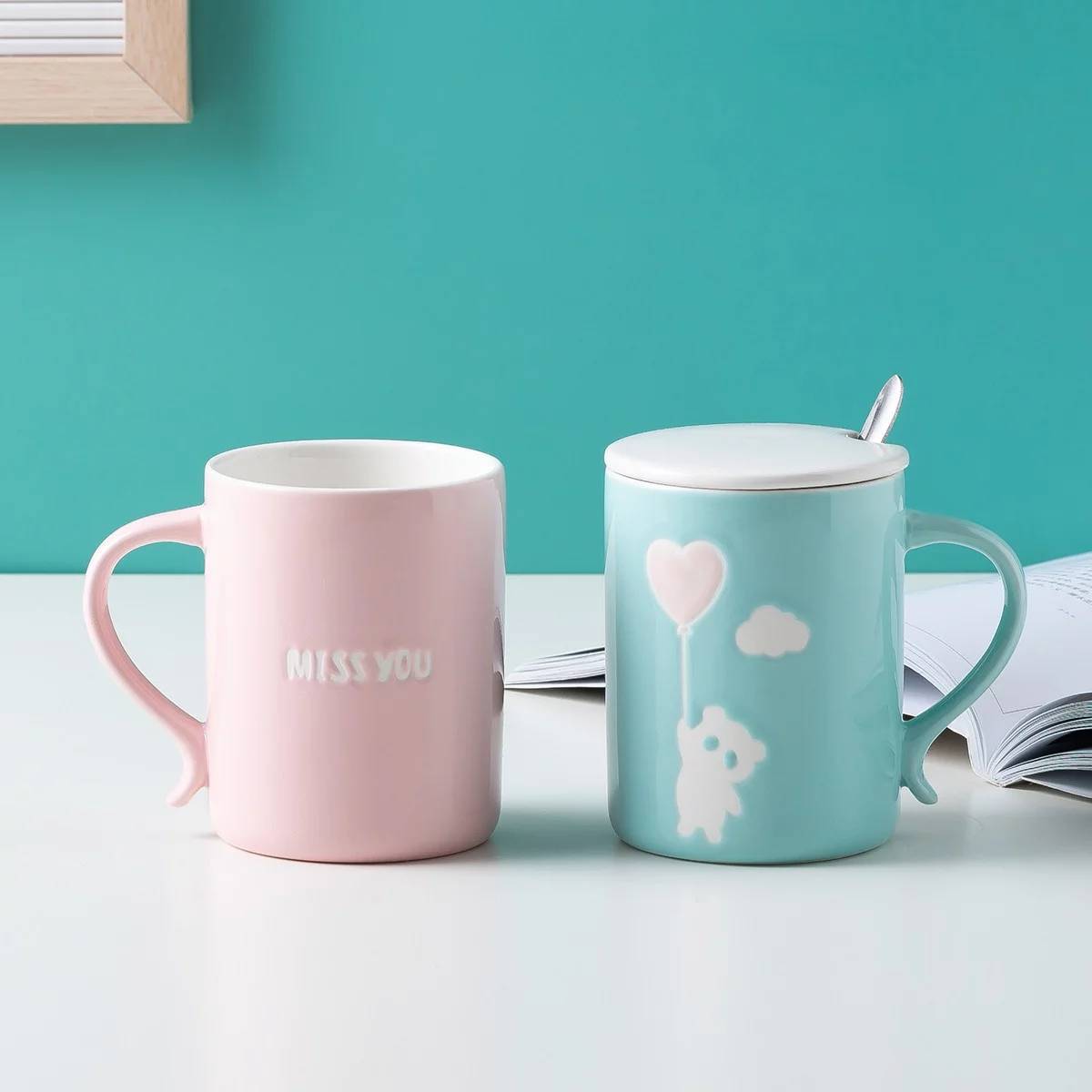 包邮 大容量陶瓷带盖勺可爱卡通马克杯情侣杯水杯杯子咖啡杯