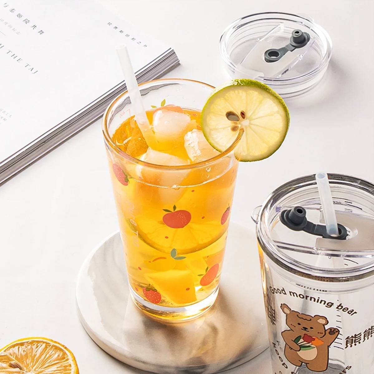 包邮 可爱带吸管玻璃杯子家用水杯夏季果汁杯女