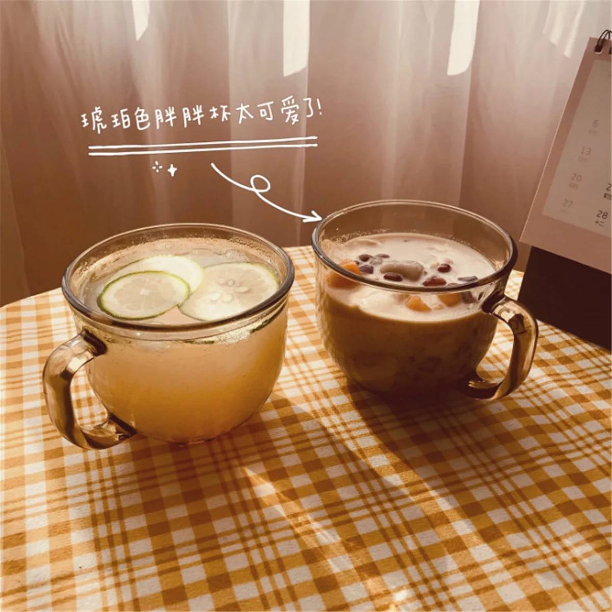 包邮 茶色玻璃燕麦早餐杯清新简约耐热大容量牛奶杯